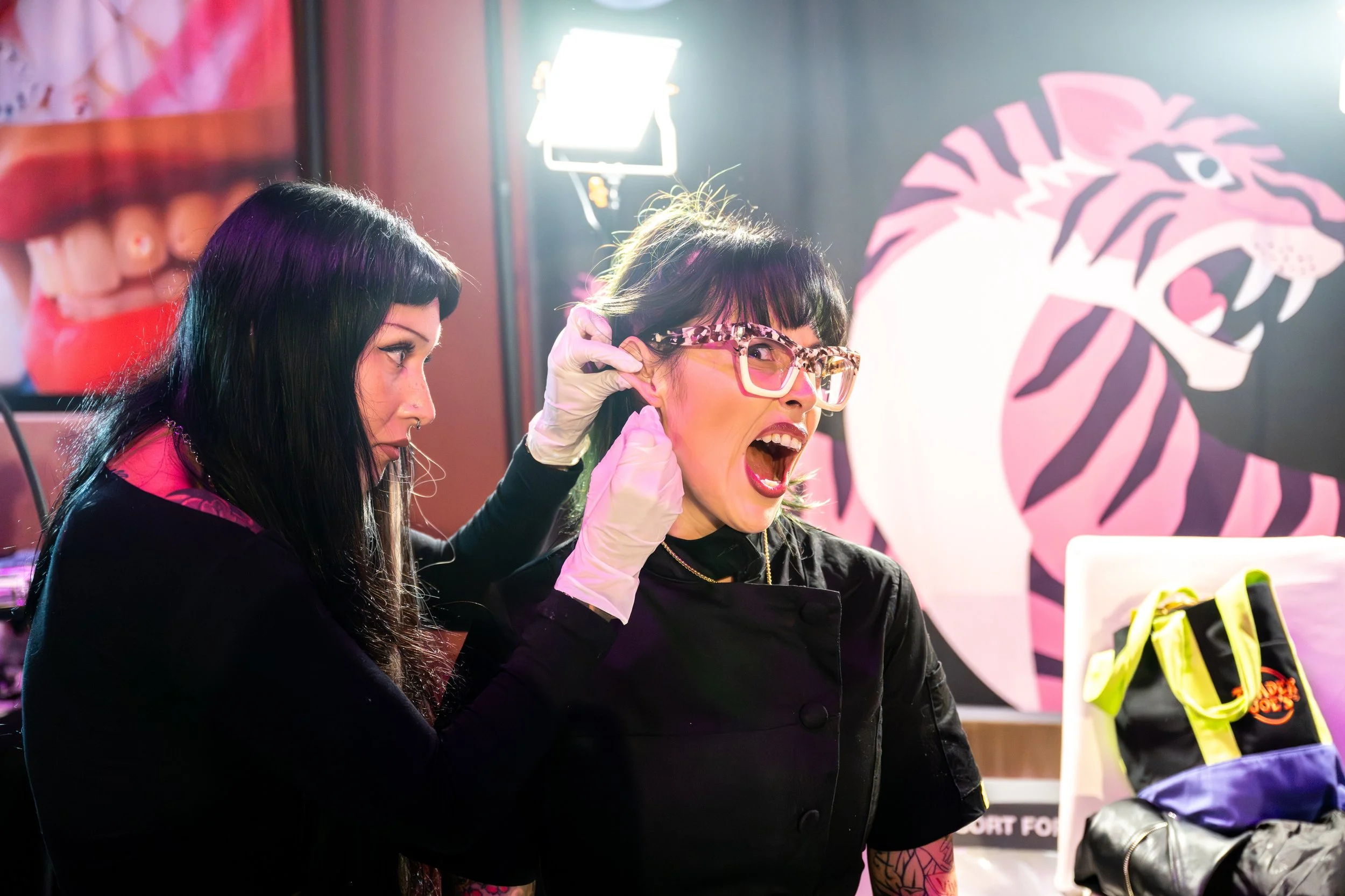 Piercings, tooth gems, permanent jewelry, vintage fashion, a DJ, and nonstop vibes.